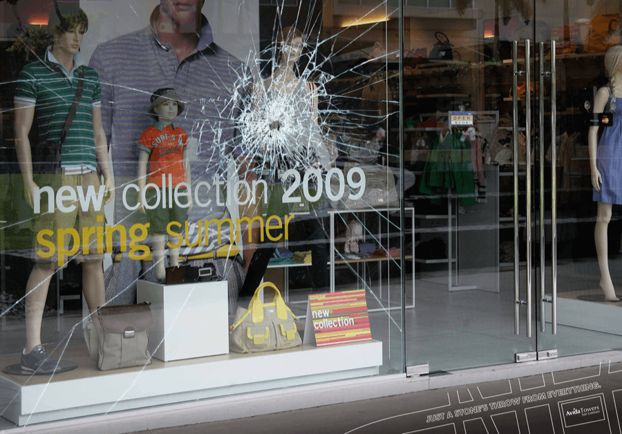 This clothing store utilizes a broken glass design — very out of the ordinary for most department stores. Here, though, it makes you take another look at their display.