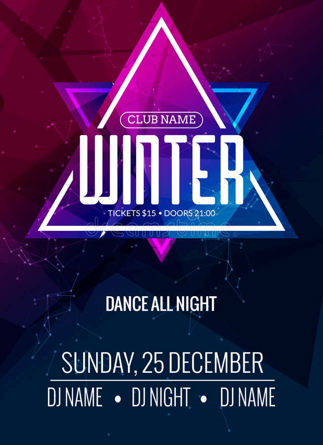 Example 1. The first one has a minimalistic, eye-catching design, which is important in today’s busy world. The electric color scheme, typography, and CTA to “dance all night” sends out the easy-to-understand message. It’s time to have fun. 💃🥳