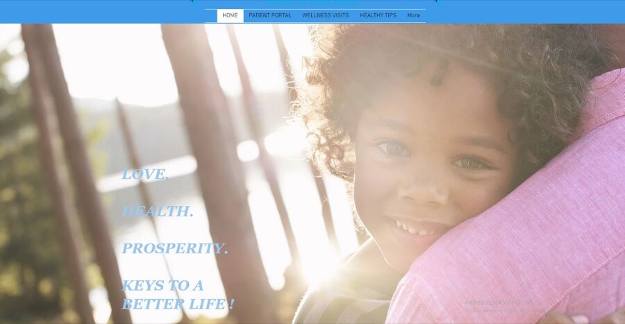 From the title to the image, this urgent care clinic’s website layout clearly spells out its mission. It shows all the ways that patients can receive care quickly and get back to living their life. Options are easy to find. Plenty of space between each element makes this website easy on the eye. And the color scheme uses calming blue and cheery primary colors — a perfect palette for an urgent care practice.