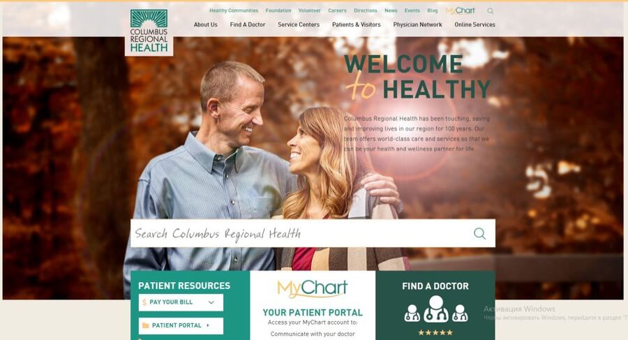 With a large menu that serves job applicants, volunteers, and patients, Columbus Regional Health’s website features short yet clear menu items. This easy-to-read menu allows people to find what they need quickly. And, with the shorter menu just below the image, patients can find a doctor, look up their chart, and pay their bills easily.