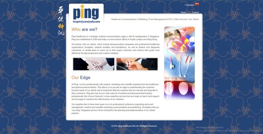 While we love this medical communications agency’s use of soothing blue color and medical imagery, it starts off all wrong. Look at the header. Is there anything about healthcare communications there?