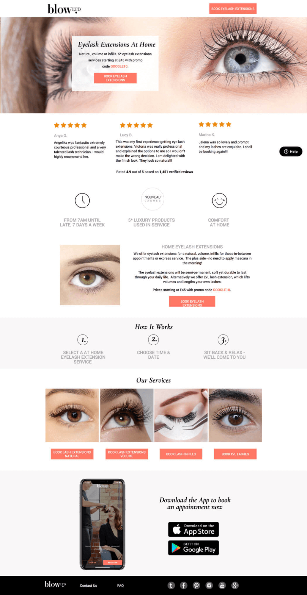 Blow LTD has a great hero image to reinforce their headline and the rest of their above-the-fold content. There’s no question what this brand sells. We love how everything combines to make their product and service instantly recognizable.
