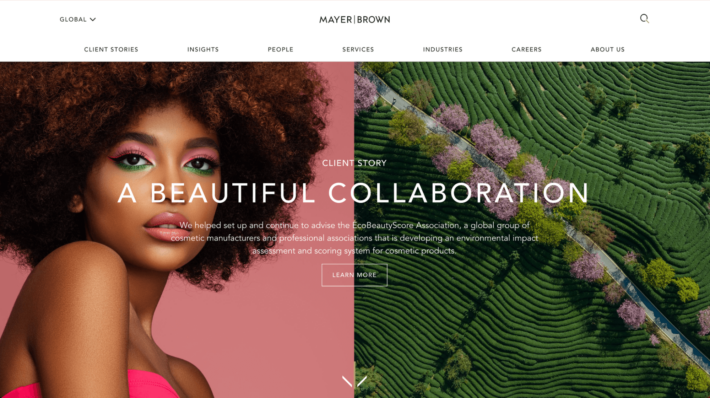 This law firm website example divides its main content into thematic blocks that are easy to scan and digest. A complementary color scheme and well-chosen typography help make the homepage inviting to scroll through. - Mayer Brown