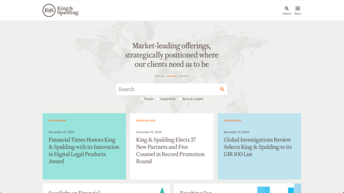 A classic grid layout is spiced up with subtle animations and colorful abstract images on this site. The result is a fresh, modern design that’s easy to navigate. It’s a great example of how to present a lot of information without overwhelming the user. - King & Spalding
