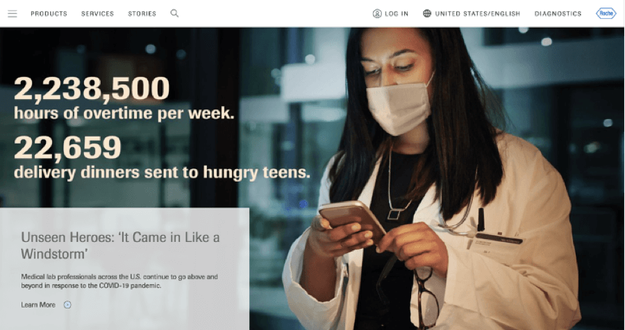 The images on this site are chosen very carefully. The focus on people brings a feeling of instant human connection to the clinical subject of diagnostic testing. The colors in the photograph also evoke a sense of calm and reflect the branding colors of the site.