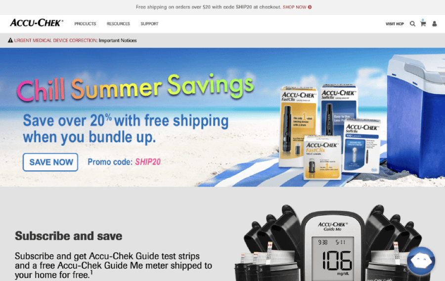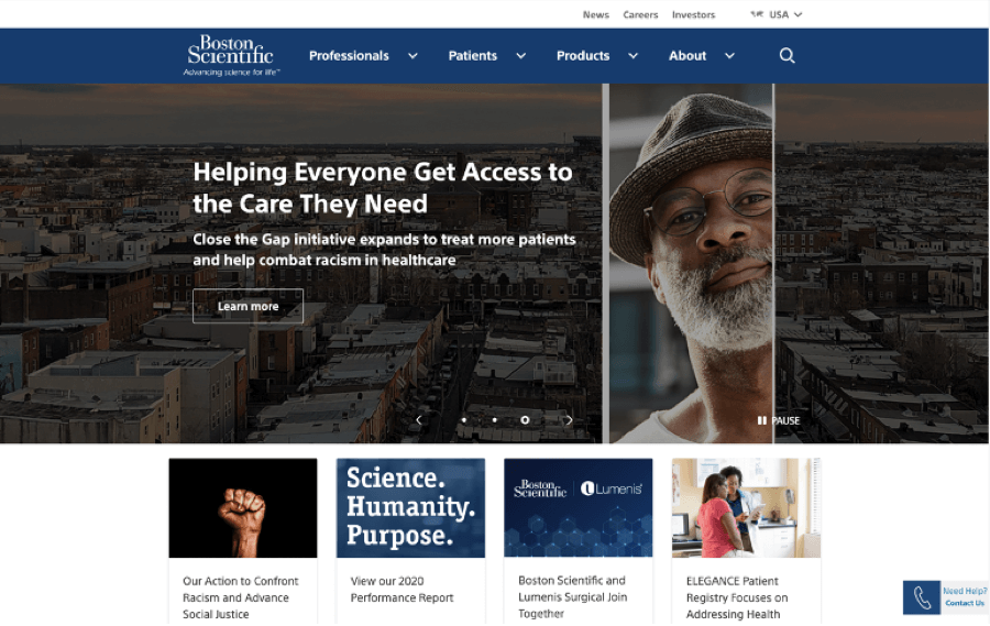 This site uses images to connect with different segments of its audience. For example, healthcare professionals see pictures of equipment and people at work. Meanwhile, patient sections feature lifestyle photographs focusing on the people, not the illness.