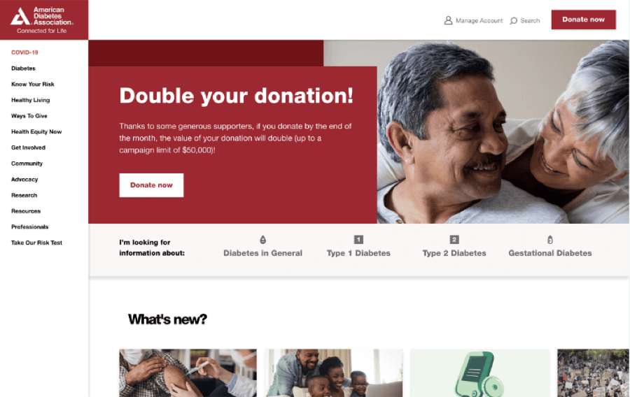 While most sites use a horizontal menu as their primary navigation, the American Diabetes Association has opted for a vertical menu in the left-hand column. This means that there’s more space for main menu items without looking cluttered. The menu sublevels are also easy to read from left to right, just like regular website copy.