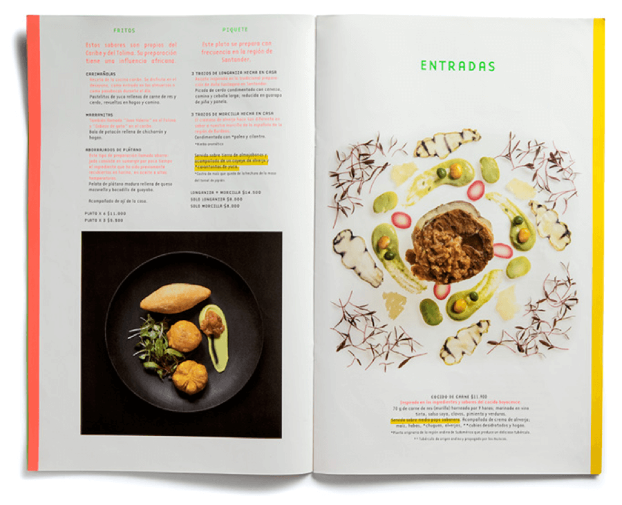 La Principal uses artistic food photography and bright colors. This menu is really effective at provoking appetite.
