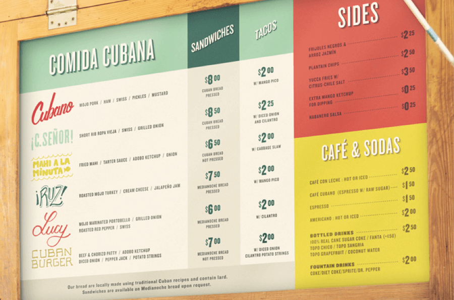 When coming up with your menu, look at restaurant and café menu designs that provide the customer with a clear path. Keep in mind, your menu isn’t just a piece of paper that lists food. It’s a tool to help you sell.