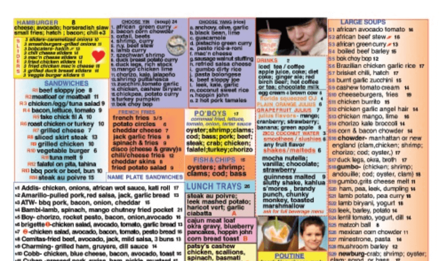 This menu has a scattered look. They had good intentions here, but the design looks amateurish. It’s difficult to make sense of the layout, increasing the chance that someone will make a mistake when ordering.