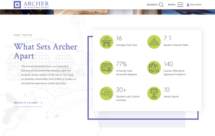 The Archer website has an extremely classy look and feel due to its use of beautiful pastel colors. This creates a peaceful setting and makes the site very easy to read. The site also uses infographics to simplify the information and make it more memorable.