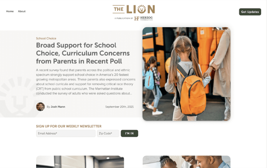 Although not strictly a school website, The Lion offers information about Christian education, and we’ve included it in this list because of its comprehensive layout. It uses blocks divided into different themes, which make it extremely easy to access the information you need.