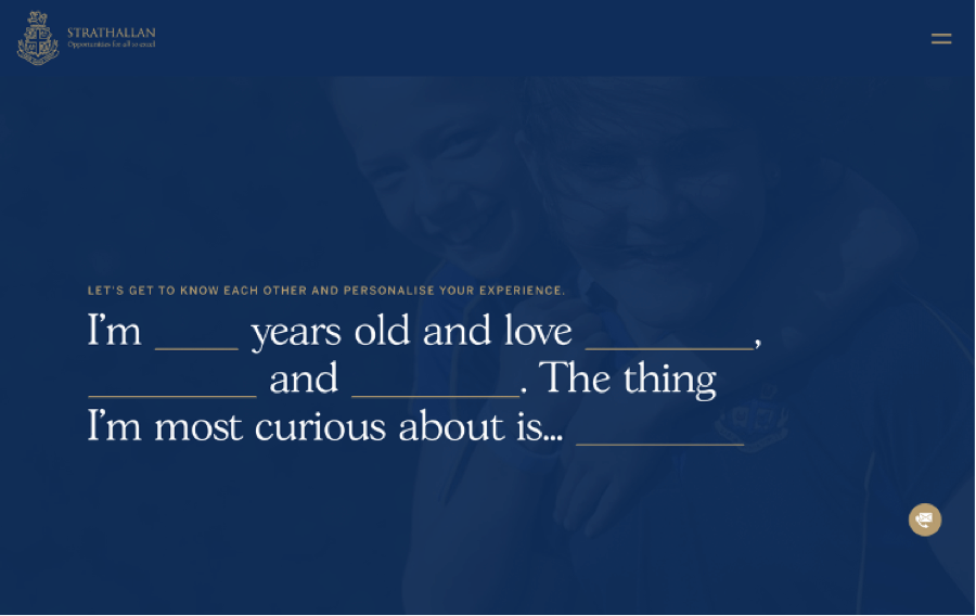 This is a great example of typography being used interactively. As soon as you land on the Strathallan site, you are invited to enter information about yourself, from the point of view of a child, to personalize your experience. This part is a great move, a clever piece of design: as from the start, it involves you in the site and makes you feel it is talking to you directly.