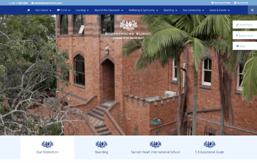 Stuartholme School’s website uses video to great effect. You are greeted on the homepage with impressive footage of the school’s campus and facilities, showcasing the beautiful buildings and setting. This really conveys the atmosphere of the school and gives a feeling of what it would be like to attend.