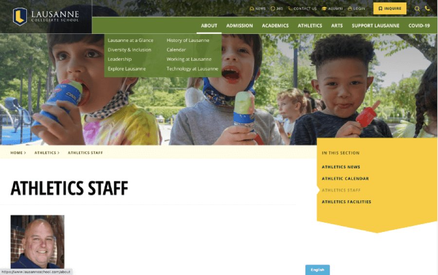 The menu layout for Lausanne Collegiate School is so intuitive to use. It makes great use of color, with every menu section highlighted in a different shade. This really simplifies things and enables you to take in a lot of information easily.