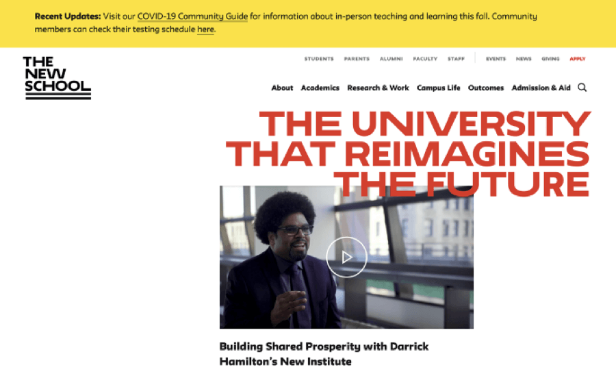 Click onto the NYU site and you’re instantly hit with a modern color palette of different shades of purple. This gives the entire site a cohesive look that’s punchy and modern, and also makes it surprisingly easy to find the information you’re looking for at a glance.