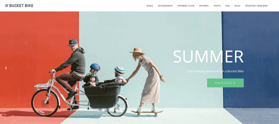 Madsen, a manufacturer of family bucket bikes, really takes us for a ride with their awesome layout. Their homepage has a lot of information on it, but they balance images, text, and white space perfectly so that things don’t seem cluttered or confusing.