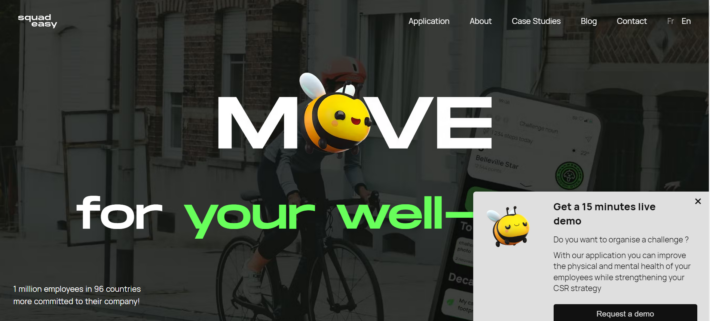 Squadeasy gamifies physical activities to encourage people to embrace an active lifestyle. The startup’s website reflects this theme. It uses animations, interactive graphics, and appealing typography to improve user experience. The startup presents content in a fun and exciting manner to drive engagement.