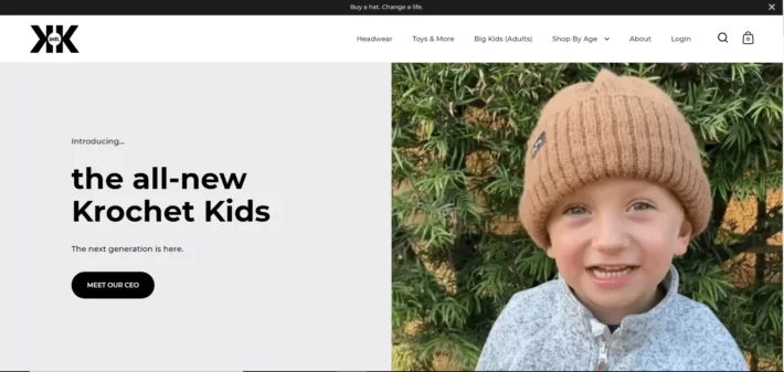 - Pros: Every element of the startup website is meant to appeal to your emotions. The images of kids wearing products and the women crocheting them scream compassion. The website uses CTAs and product listings to drive sales and conversions.
